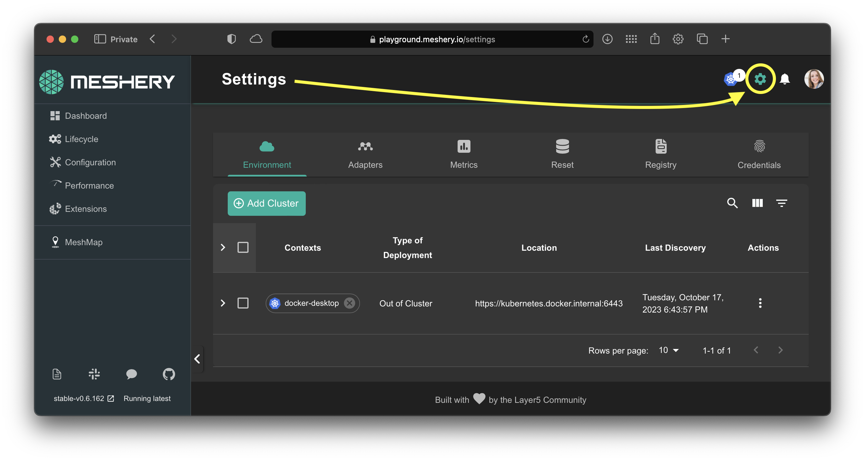 You may now proceed to manage any cloud native infrastructure supported by Meshery. See all integrations for a complete list of supported infrastructure.