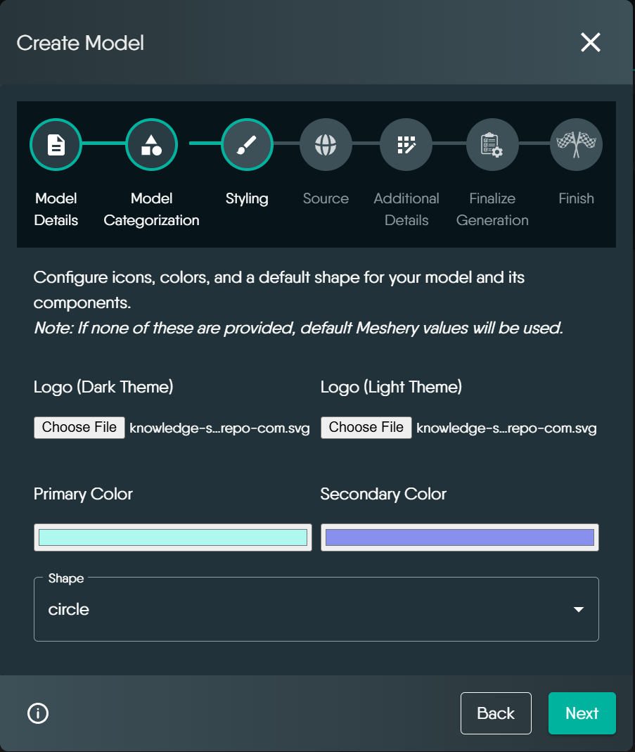 When a model is marked for visual annotation only, it means the model will be used purely for visualization and diagramming purposes within Meshery’s interface, rather than for actual infrastructure management.Step 7: Finalize and Create Your Model
