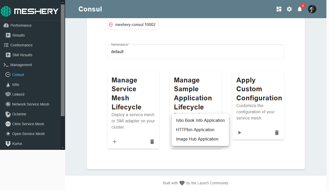 Once BookInfo is deployed, you can use Meshery to apply custom configurations to control traffic, inject latency, perform context-based routing, and so on.