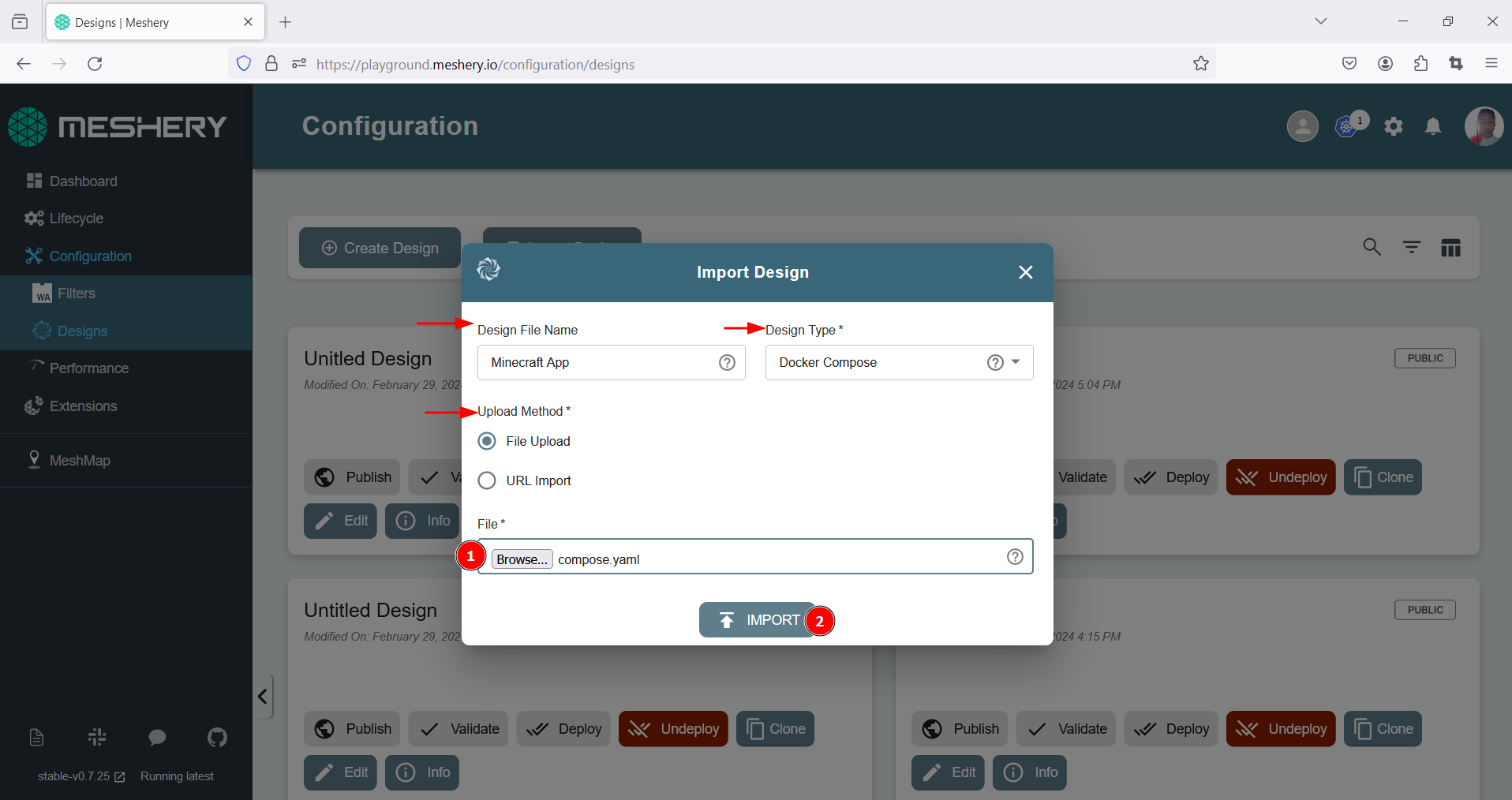 - Upon successful import, a pop-up message will confirm the completion, and it will also indicate that your design has been automatically saved in Meshery.