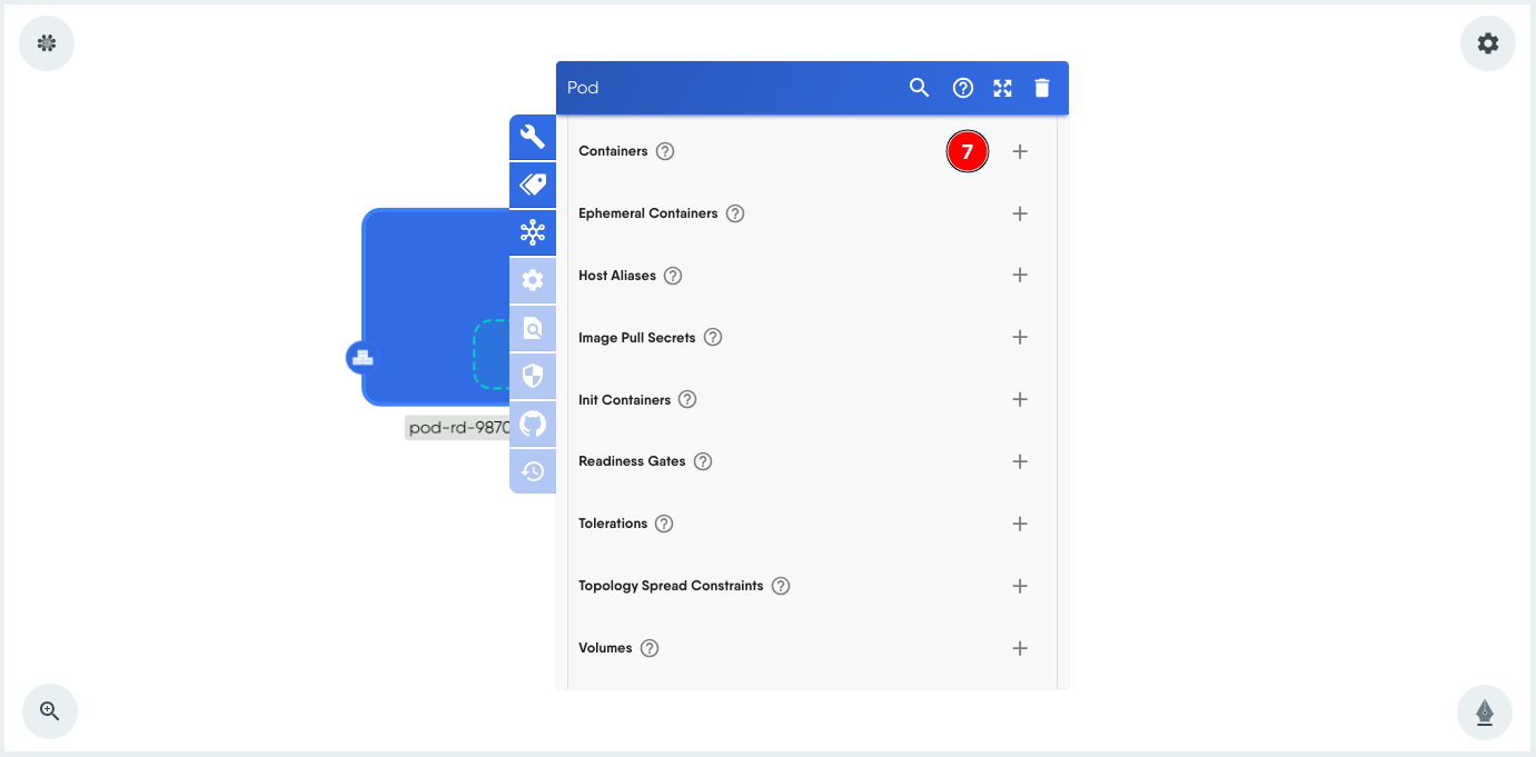 - Scroll down within the Pod configuration modal to the Containers section. Click + to add a container.