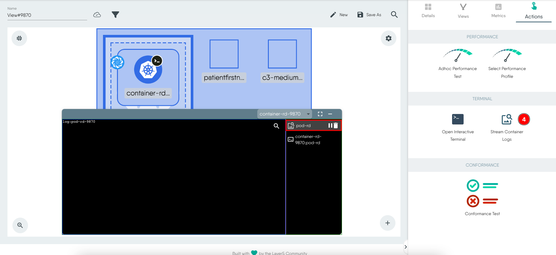 - Select the Pod (or container). If you have multiple containers in a pod, select a container.