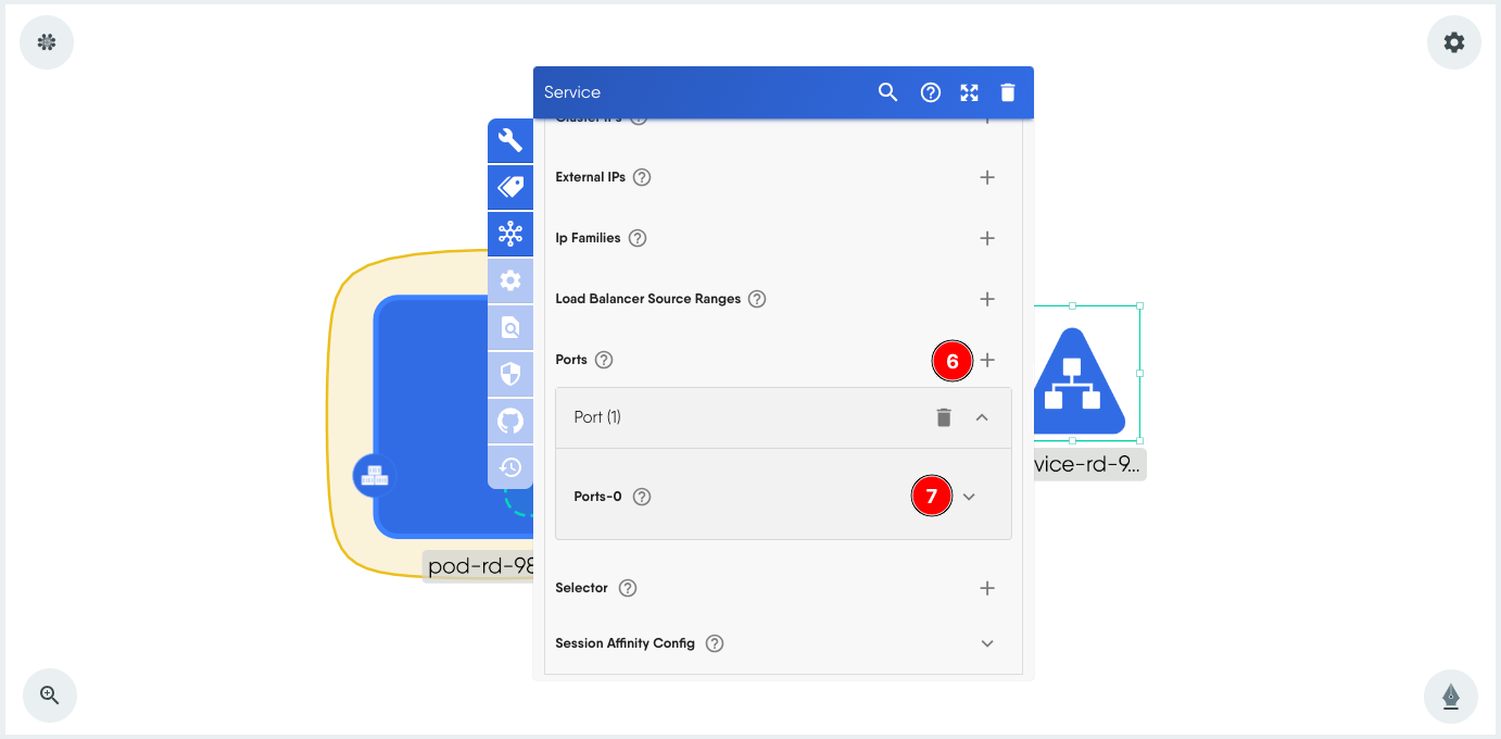 - Expand the Ports-0 service port to make changes.
