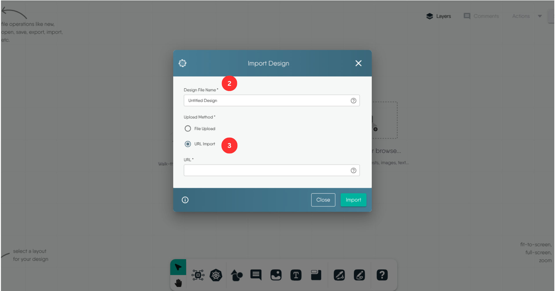 Select your preferred import method: either URL or File Upload.