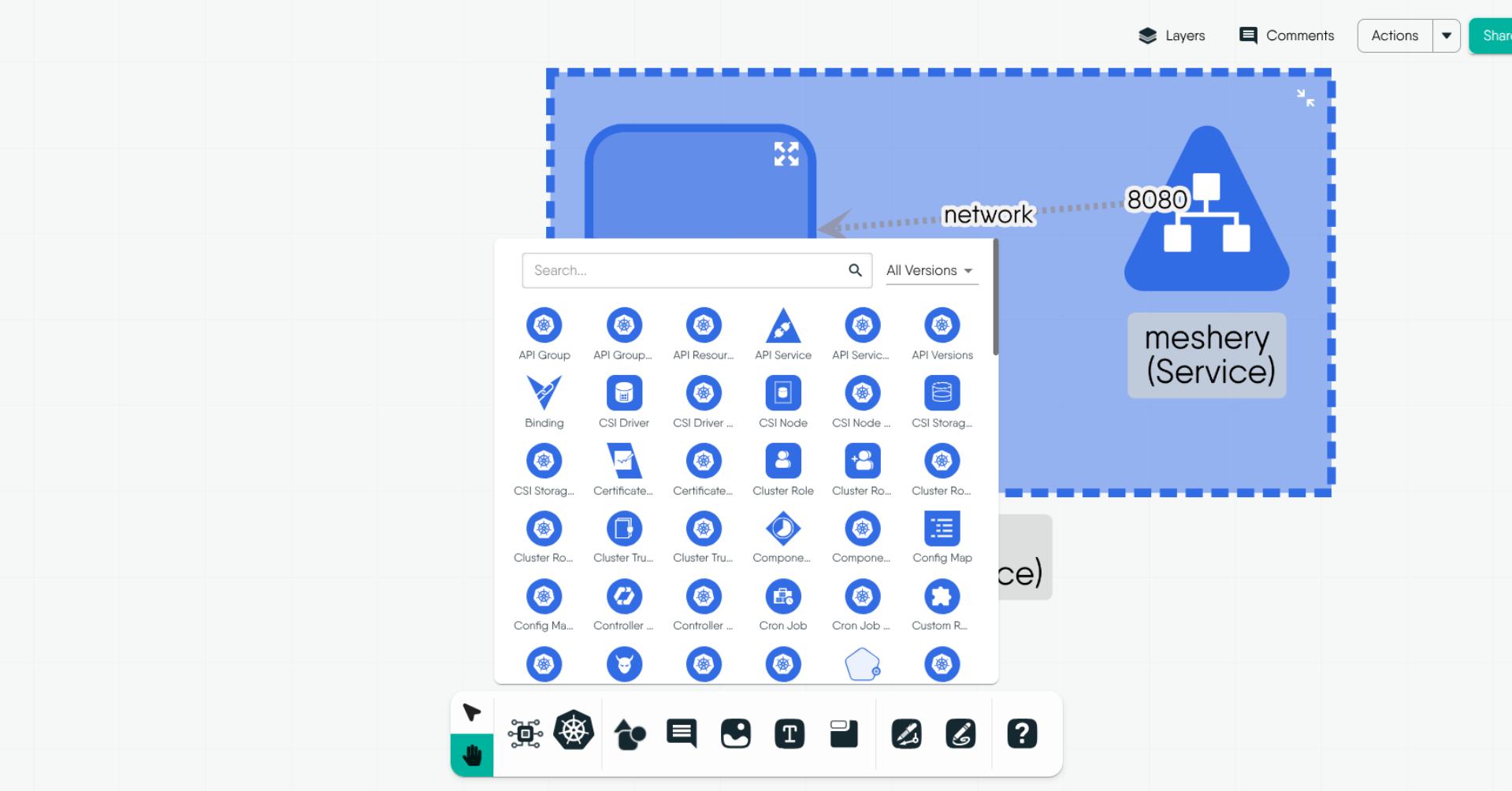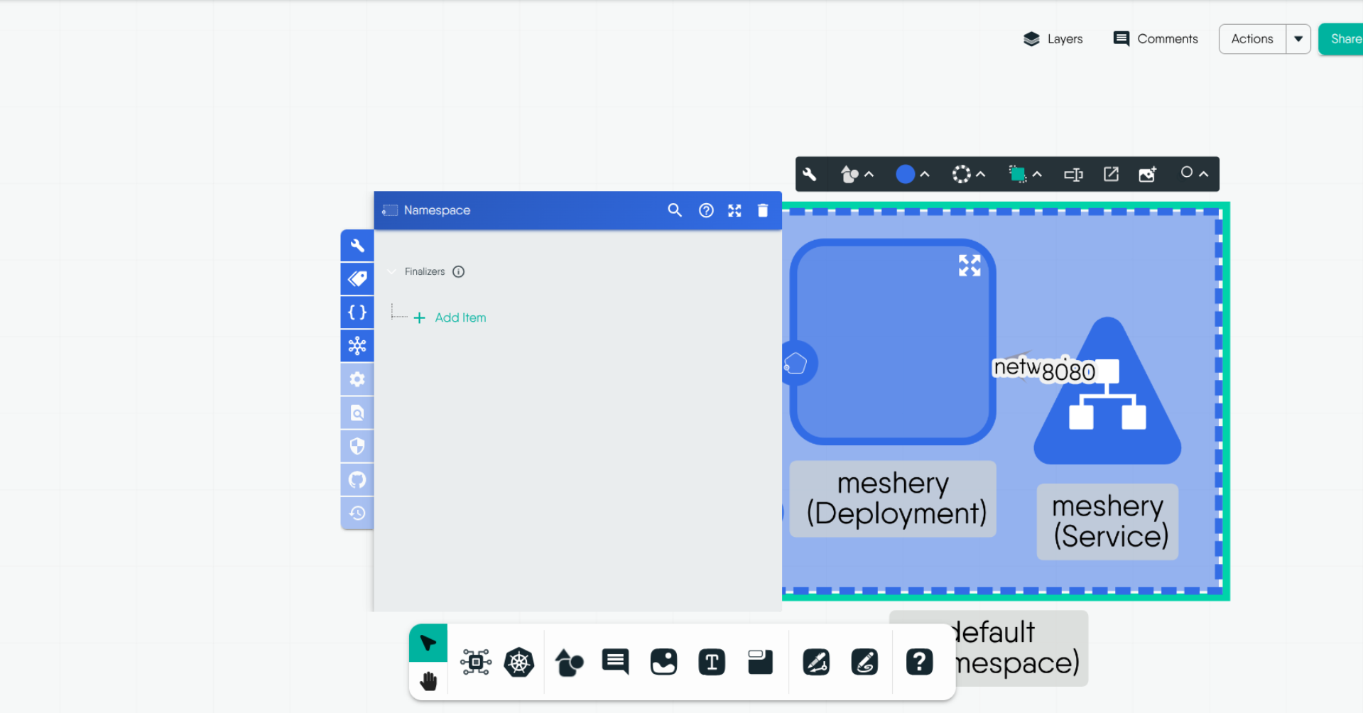 Creating designs in Kanvas is a seamless process that enables you to visualize, configure, and manage cloud-native infrastructure efficiently. This chapter will guide you through various methods of creating designs, whether starting from scratch, importing configuration files like Helm charts or Kubernetes manifests, or utilizing published designs from the Layer5 Cloud catalog.